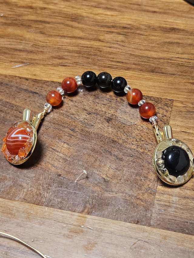 2026年運気アップ 太陽と月の揺るぎない大地 ストールクリップ カーディガンクリップ 天然石 モリオン メノウ オニキス オブシディアン カーネリアン 金運 守護 お守り 邪気祓い 1点限り