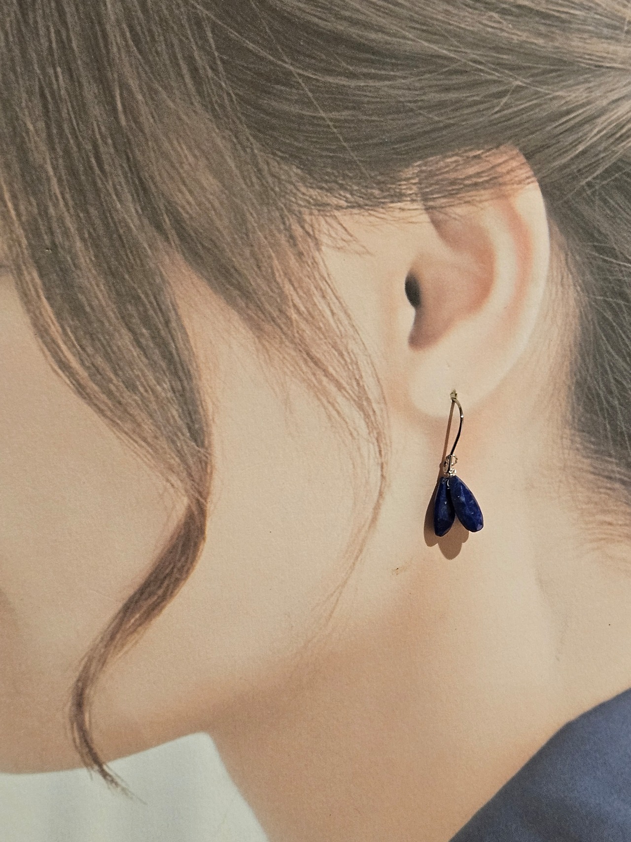 きらきら輝くそして揺らめく、ラピスラズリ、ペアシェイプ、ファセットカット、ピアス、ラピスラズリピアス、イヤリング、イヤーカフ、イヤーフック、ステンレス、パワーストーンピアス、幸運、成功、直感、真実、邪気払い、冷静な判断力、自己成長、ストレス軽減、ストレス緩和 | 天然石ジュエリー RoyG-BIV