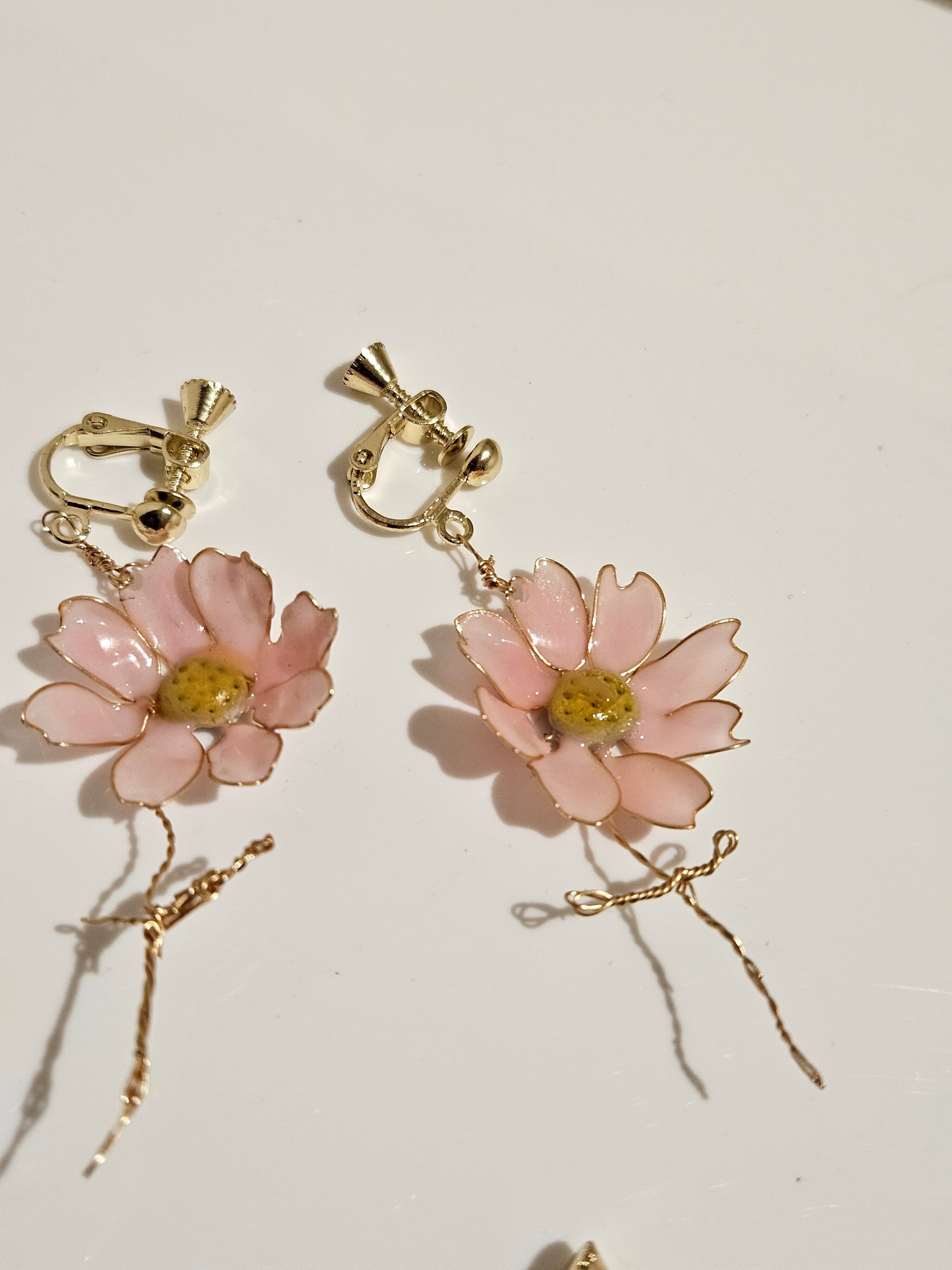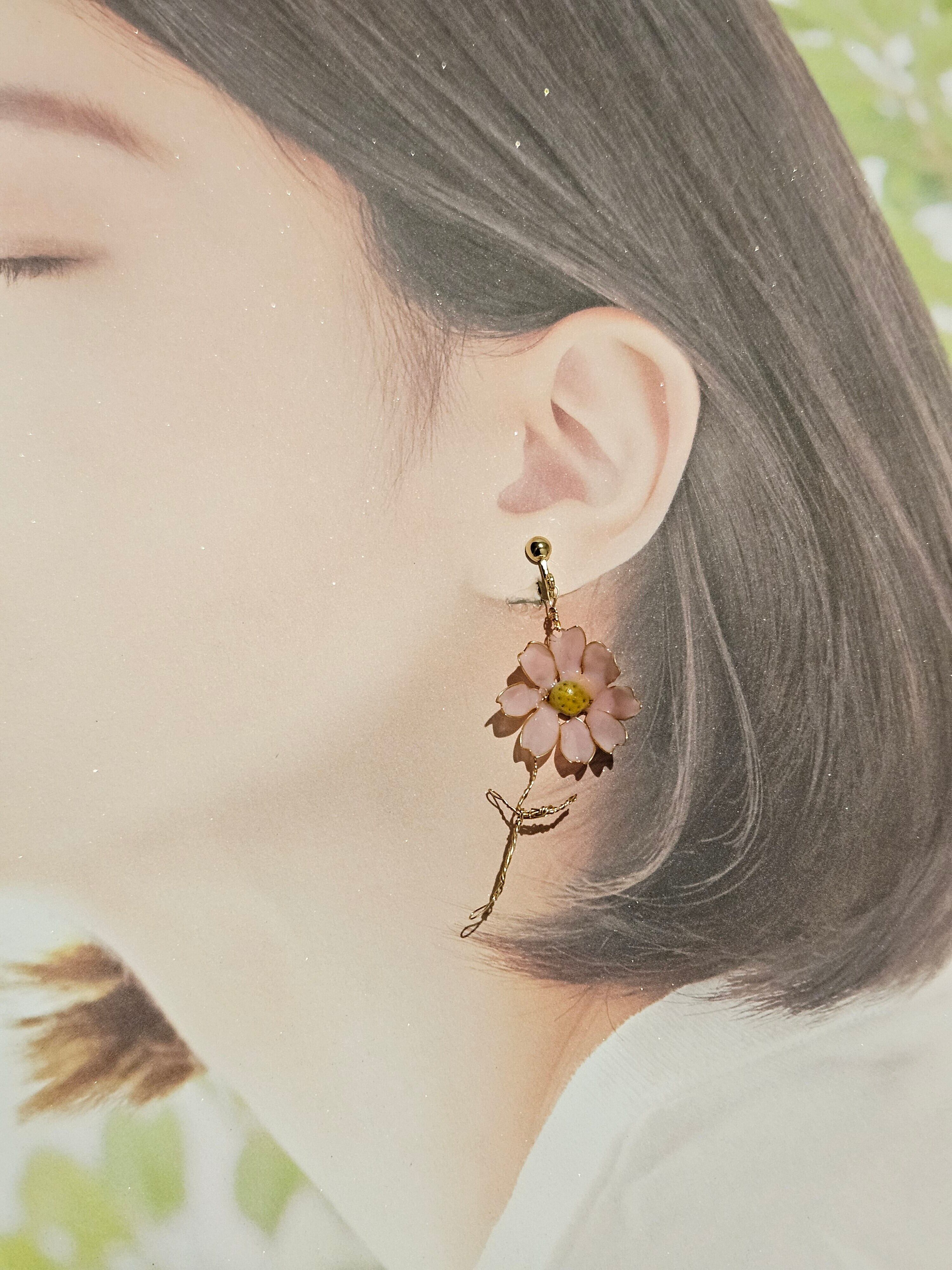 秋のコスモス華やぐイヤリング、ミルキーピンク、ピアス、イヤリング、イヤーカフ、調和、謙虚、乙女の真心、乙女の純潔、誕生日、卒業式、お祝い、プレゼント、自分用、送料無料 | 天然石ジュエリー RoyG-BIV