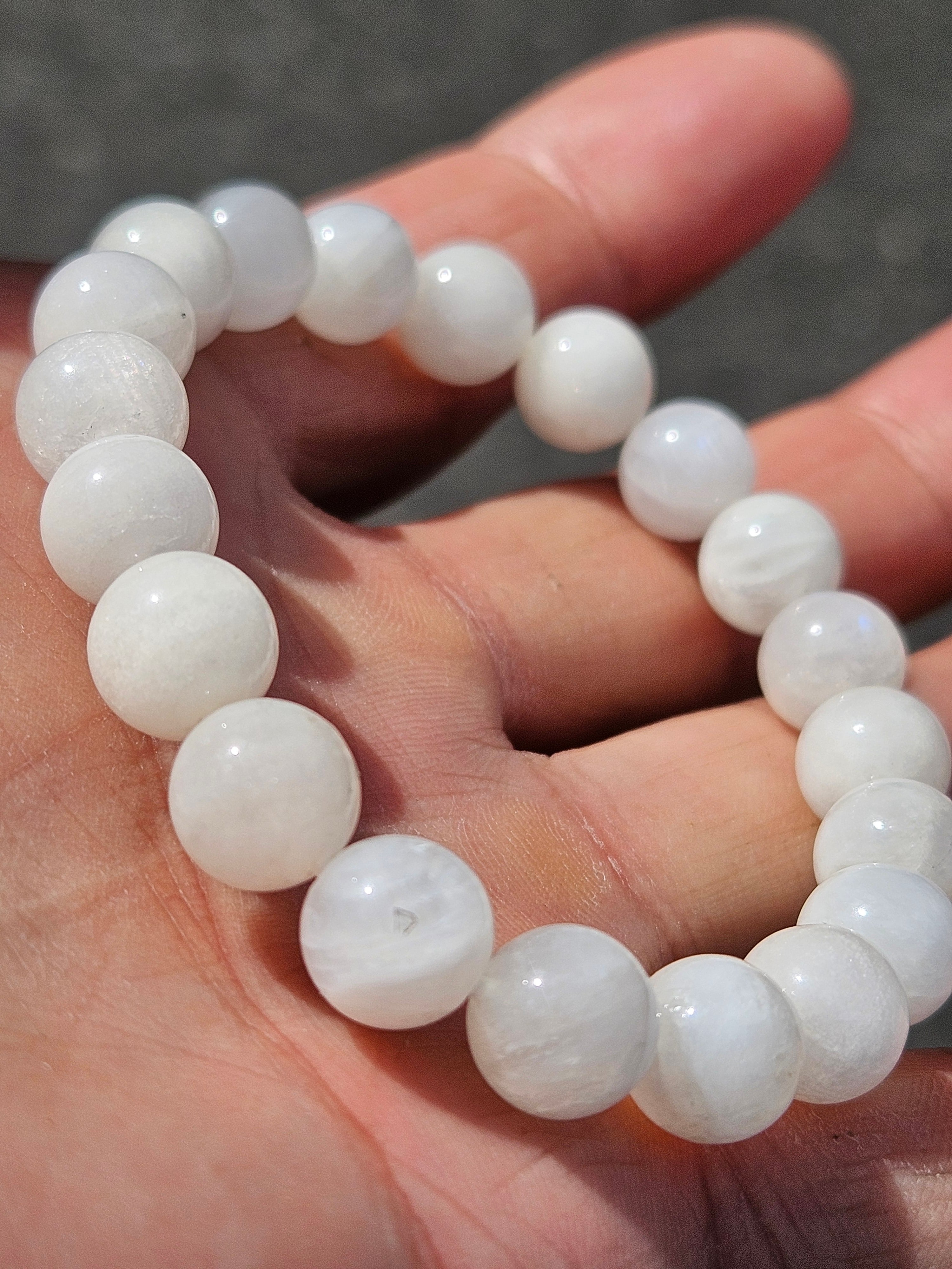 こちらは、美しさとパワーを兼ね備えた「青いシラー ホワイトムーンストーン ブレスレット」です!