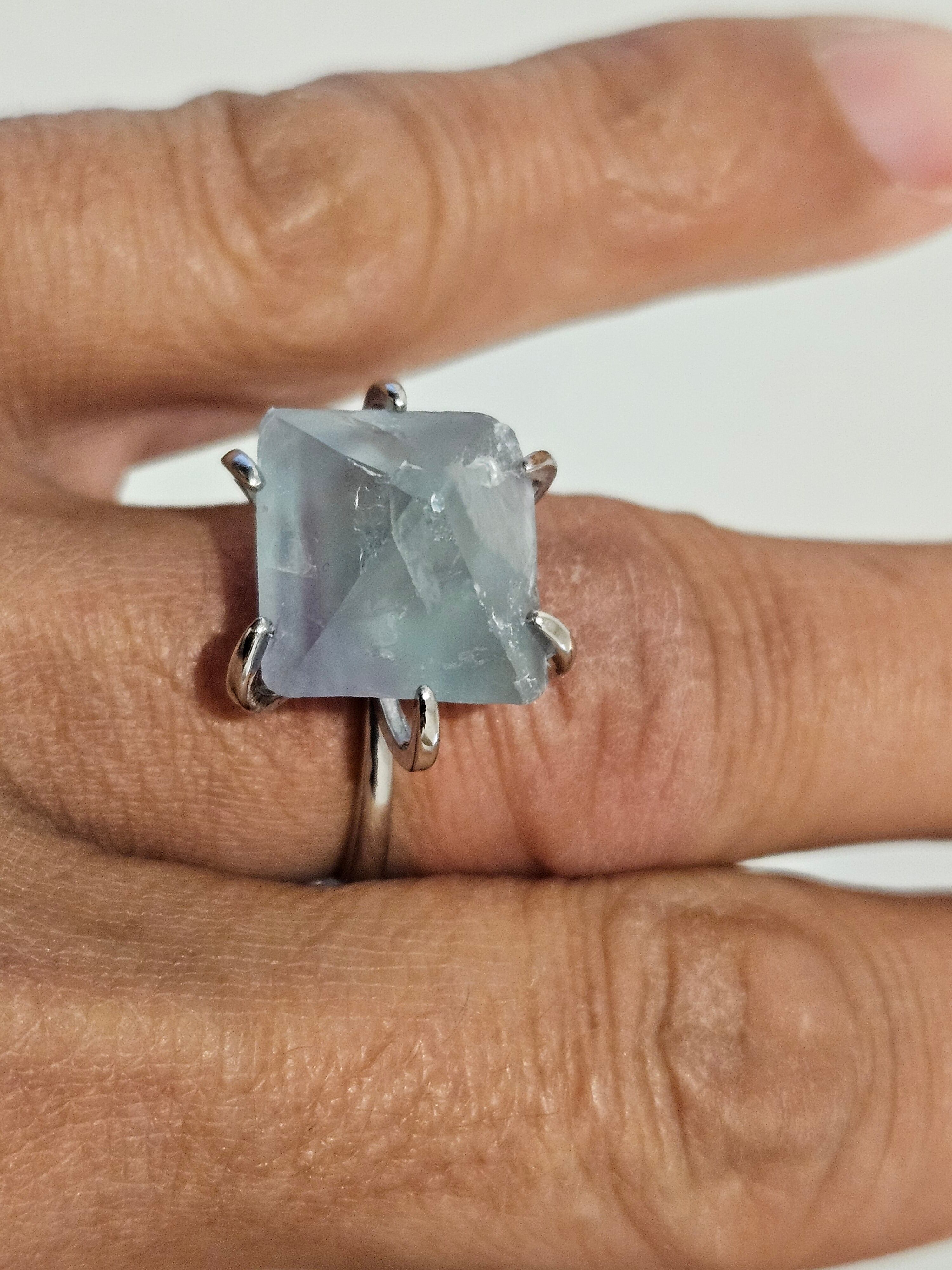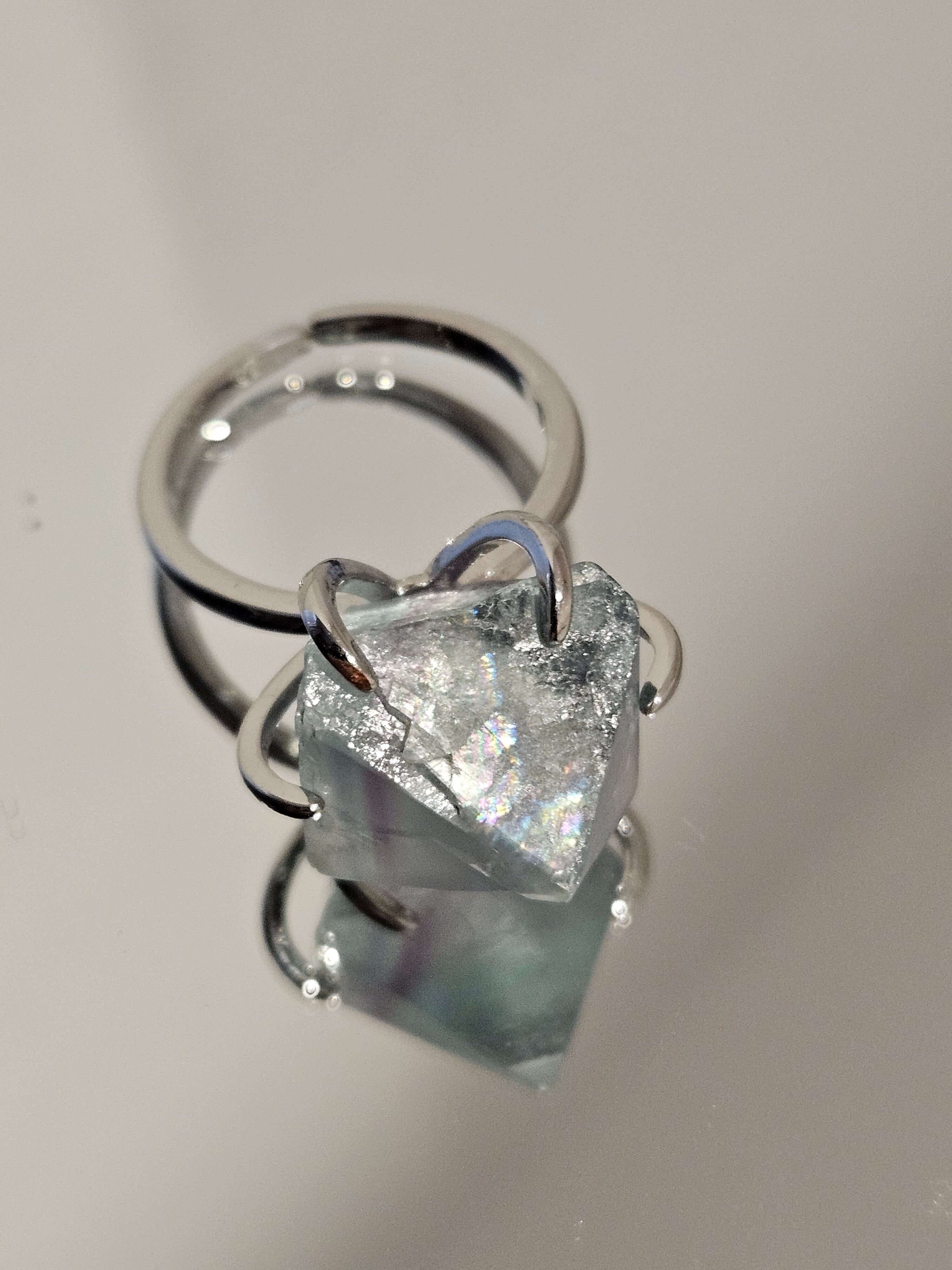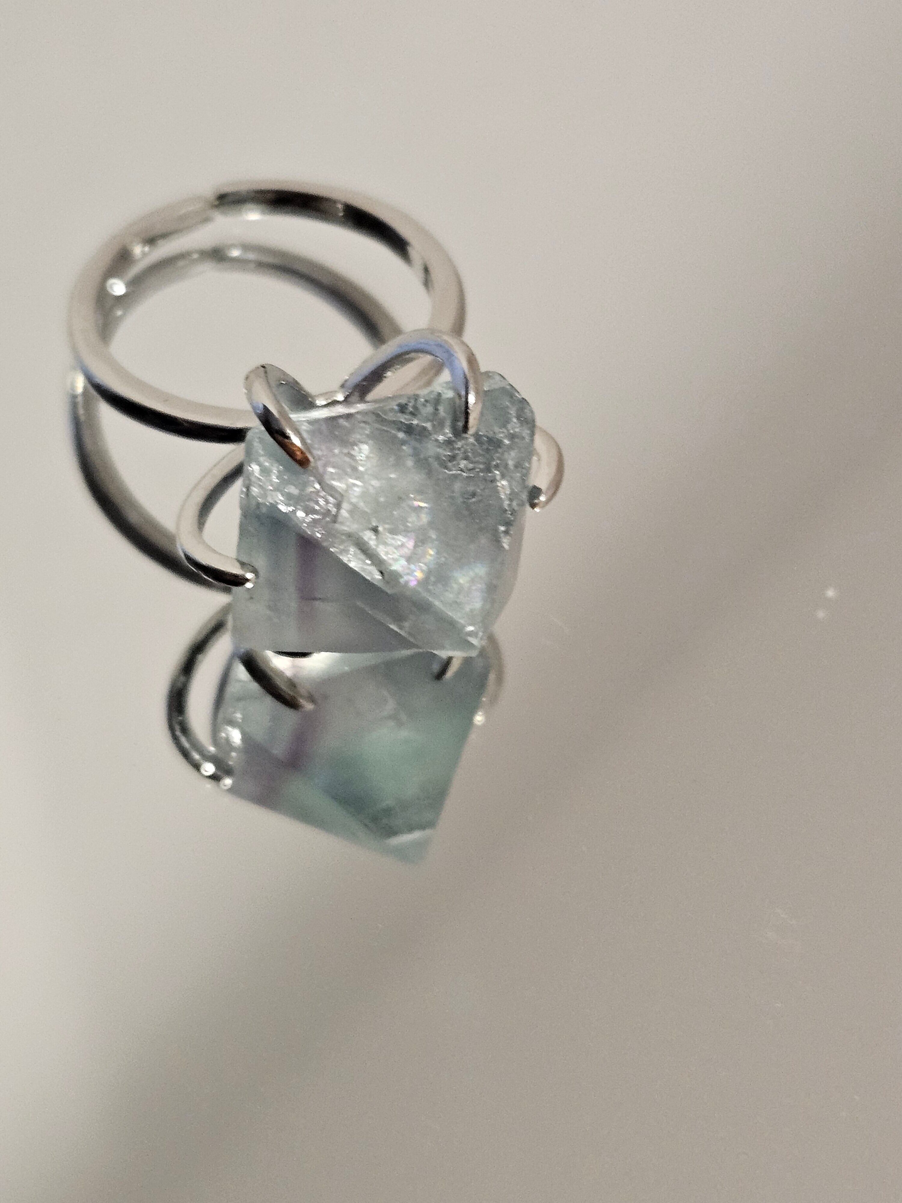グリーンフローライトにすこしだけ、パープルフローライトのラインが入っています。世界にひとつだけの唯一無二のリングです✨